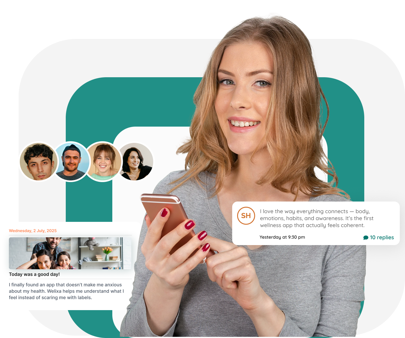 The Welixa Community is a supportive space where users can share personal experiences, exchange general well-being tips, and encourage one another. Community content is based on personal stories and is not intended to provide medical advice.